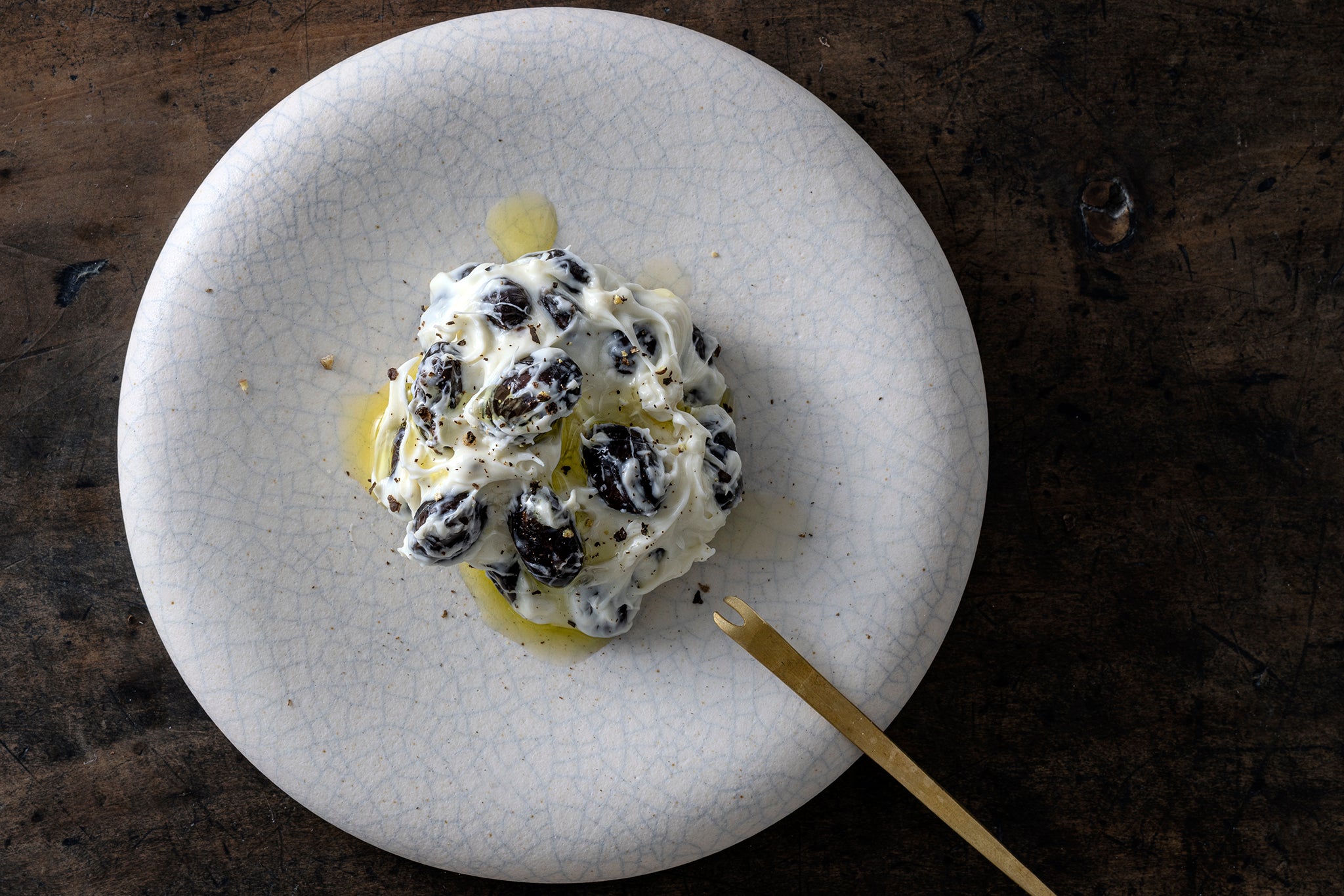 はじめは混ぜずに。そして十回だけ、そっと和えると香りがほどける。